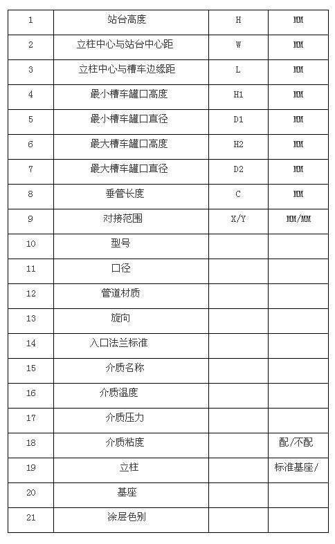 液化氣鶴管鶴管(陸用流體裝卸臂)基本參數