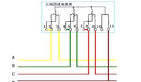 翻過接線端子蓋,就可以看到三相四線電表接線圖。